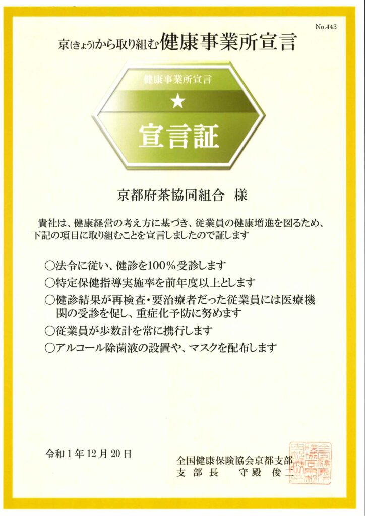 新着情報 2025年7月3日 令和7年産新茶の生産と価格の状況について(関係団体連名) 詳しくはこちら 2025年4月4日 令和7年一番茶萌芽宣言 詳しくはこちら 2025年3月27日 宇治新茶 八十八夜茶摘みの集いについて 詳しくはこちら 2024年4月9日 宇治茶宣伝隊 番組出演について 詳しくはこちら 2024年4月4日 令和6年一番茶萌芽宣言 詳しくはこちら 2022年12月19日 荒茶製造における費用高騰調べ(令和2年と4年の比較) 詳しくはこちら イベント 2025年5月1日 八十八夜新茶の集い(宇治市) 2023年5月2日 八十八夜新茶の集い(宇治市) 2019年11月09日 関西お茶まつりin京都城陽 2019年11月09日 キッズ「茶ムリエ」検定(城陽市) 2019年10月20日 キッズ茶ムリエ検定(京田辺市) SNS 宇治茶レディ 組合員紹介 一保堂茶舗(有)伊藤柳櫻園茶舗永谷宗園茶店(有)旭園製茶所お茶の通圓(有)北岡園奥西緑芳園浅田香保園(株)光露園マルコウ谷口園製茶工場谷村福松園本店(株)古畑園山城宇治茶業社 直売部(有)『京の老舗』流芳園浅田園本店㈱新伝兵衛(有)有田三翠園㈱伊藤久右衛門京都茶の蔵㈱㈱宇治香園株式会社 宇治田原製茶場㈲宇治芳翆園内田三春園京都大正園茶舗㈱(株)大谷茶舗㈱大西製茶場小川武治茶舗㈱奥西玉光軒茶業かほる園㈱上辻園(有)上林春松本店喜作園 和田茶舗(名)北川半兵衛商店㈱木谷製茶場(株)木長園株式会社協栄製茶 壱之庄共栄製茶株式会社京都茶農業協同組合喜緑園茶舗㈱桑原善助商店香露園 岩井六左衛門香岳園製茶株式会社香楽園製茶澤井園茶舗柴田園祥玉園製茶(株)㈱松北園㈱角與商店(株)清泉園本店大正園茶舗大成園㈱大門かんばやし㈱髙田通泉園高村三光園株式会社 竹村玉翠園田丸屋茶業(株)辻岩製茶(株)辻製茶(有)辻 福㈱辻利一本店㈱辻利兵衛本店摘翆園島本株式会社㈱鳥羽伊茶舗㈱仲井玄米茶屋仲井芳東園中川常緑園茶舗永谷茶業(株)中村藤吉本店(株)西出旭松園㈱西出製茶場㈱西村幸太郎商店㈱西村番茶屋本店㈱能勢商店馬場弘商店林屋製茶(資)㈱播磨園製茶㈱福寿園㈱福文製茶場㈱藤本商店㈲藤二商会(資)古勝製茶場㈱碧翠園㈱芳香園㈱放香堂㈲芳樹園(株)芳春園岩井勘造商店㈱堀井七茗園㈱堀田勝太郎商店堀安園舞妓の茶本舗前野商店(資)松阪屋嘉八本店マルイ緑寿園本店㈱丸久小山園㈲丸伍製茶マルコウ脇守園㈱丸宗まるなか製茶マルヒコ小尾商店㈱丸又園マルリ大谷茶園本店(有)三星園上林三入本店㈱村田祥雲軒(株)もりた園森本正太郎商店㈱矢野園有限会社 山城屋茶舗山 甚山田園茶舗㈱山政小山園(有)吉川製茶場吉田春香園吉野園茶舗㈱利招園茶舗㈱脇本常香園(有)脇守園茶舗㈱泉香園 LINK